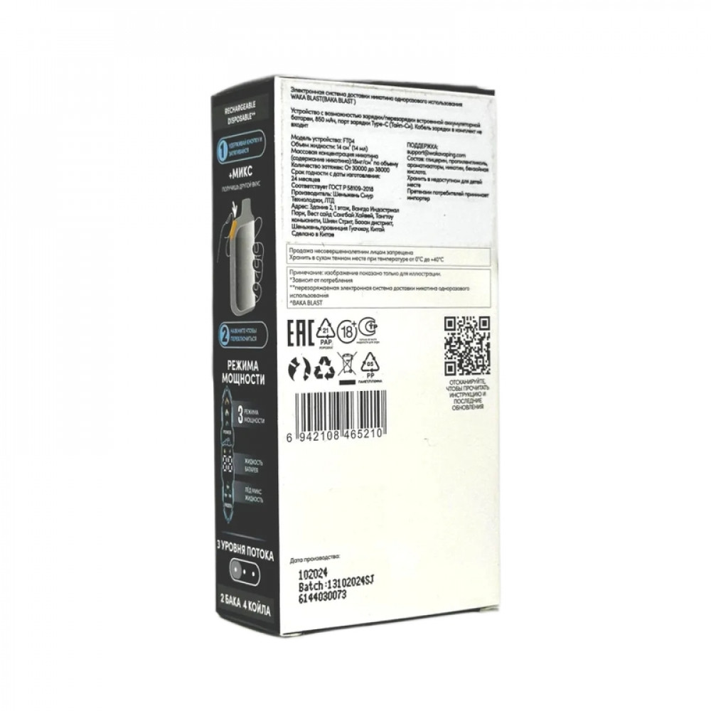 Технические характеристики WAKA BLAST 38000 Hard - Клубника + ваниль микс